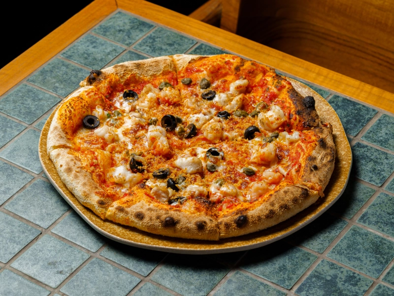 Tomato based, prawn, squid, fish, mozzarella, roasted chili, garlic crumb
