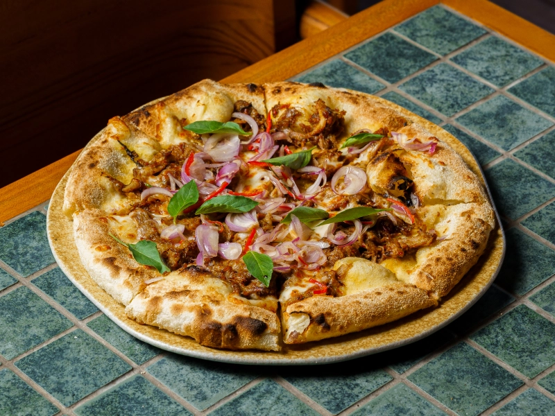 Duck, tomato sauce, mozzarella Sambal matah, sweet basil