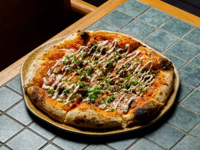 Creamy truffle mushroom based, Wagyu minced, mozzarella, truffle oil, grana padano
